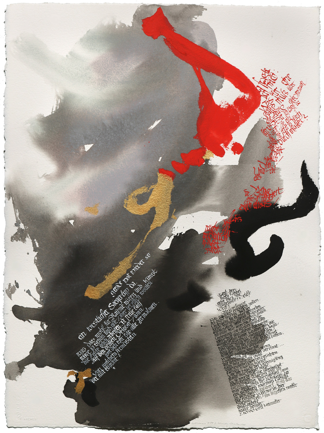The Chemnitz-based graphic designer and typographer Heinz Schumann (1934–2020) is often associated solely with the monumental wall of lettering behind the Karl Marx head. Less well known, for example, is that Schumann designed the lettering for the Freie Presse newspaper in the early 1960s, which appeared on the front page of the daily newspaper until 1989. From the 1970s onwards, he also developed an extremely original calligraphic oeuvre, in which he used ink and pen to create lively and condensed lettering graphics for short literary texts. He carefully selected the texts for this purpose, working on works by Pessoa and Neruda, Hölderlin and Kleist, as well as Else Lasker-Schüler and Klaus Mann. While he achieved great international attention and recognition with his calligraphic works, receiving numerous honours in the form of exhibitions and awards, this aspect of his work is known only to a very small circle in his hometown.The exhibition therefore brings Schumann's calligraphic work into the public eye with examples from all phases of his career in an extensive selection from his estate. In addition, his typographic designs are also presented, providing an insight into his wide-ranging commercial art activities.