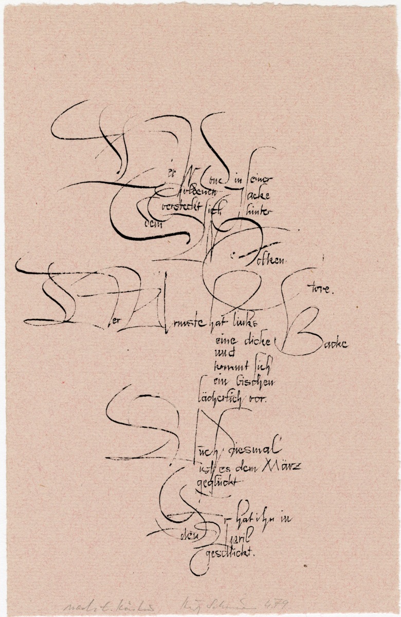 Kalligrafie – die Kunst des Schönschreibens(ab Klassenstufe 8)Jede Form von Schrift transportiert zunächst Informationen. Im besten Fall kann sie leicht lesbar sein und ist für jeden zu erfassen. Eine ausgeprägte Handschrift wirkt persönlich und kann voller Charakter und individuellem Ausdruck stecken, während die allgemeine Lesbarkeit hierbei durchaus in den Hintergrund treten kann. Der Chemnitzer Grafiker Heinz Schumann hat sich ein Leben lang mit Schrift und besonders mit Kalligrafie befasst. Bei einem Rundgang wollen wir eintauchen in seine meisterhaften kalligrafischen Werke, in denen sich Lesbarkeit und künstlerisch-freie Gestaltung oft miteinander mischen.Nach einigen Übungen mit Stahlfedern könnt ihr einen kurzen Text kalligrafisch auf das Papier setzen. Mit Aquarell- oder Goldfarbe sind zusätzlich auch farbige Akzente möglich.