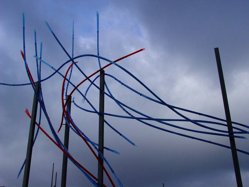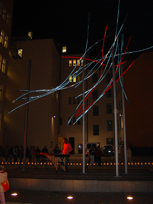 Installation aus lichtsammelndem Acrylglas und Stahl, Höhe ca. 8m