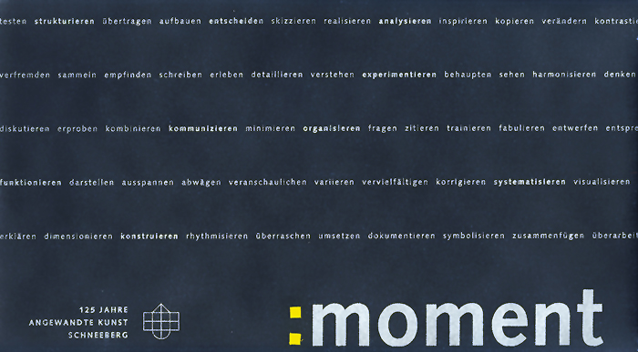 Neue Sächsische Galerie, Chemnitz 2003Die auf den Katalogkarten dicht aneinander gereihten Verben spiegeln in begrifflicher Entsprechung den vielgestaltigen Prozess ästhetischer Entwicklung.68 lose Katalogkarten (235 x 125) im SchuberPreis: 5 €