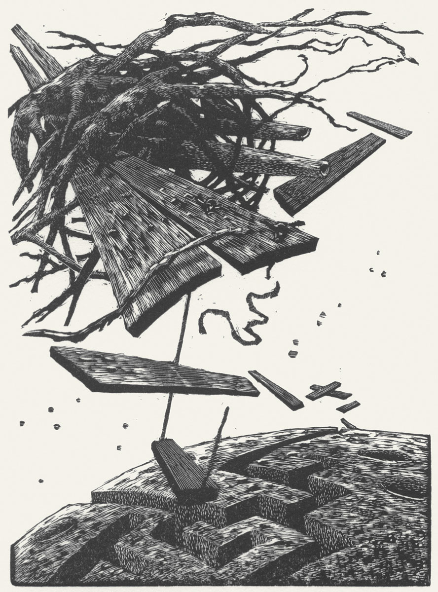 In ihrer grafischen Arbeit widmet sich Bettina Haller mit besonderer Vorliebe dem Acrylstich, einer Hochdrucktechnik, die sich aus dem Holzstich entwickelte.Geschnitten wird mit dem feinen Werkzeug der Radierer (Tiefdruck), mit der Nadel und kleinen Sticheln. So konnten höchstfeine, tonige Drucke entstehen, die bis zur Erfindung der Fotografie das bevorzugte Reproduktionsmittel wurden. Der dominante handwerkliche Charakter der Technik hat lange Zeit die Entwicklung einer selbständigen künstlerischen Gebrauchsweise behindert. Erst in den fünfziger Jahren des zwanzigsten Jahrhunderts fand der Holzstich und später der Acrylstich künstlerischen Nährboden zunächst im Schwäbischen, später auch im Umfeld der Leipziger Hochschule für Grafik und Buchkunst, insbesondere bei Karl-Georg Hirsch.Wer sich für den Stich entscheidet, entscheidet sich zugleich für die kleine Form. Bettina Haller unterläuft die Suggestionen eines kleinen Formates mit monumentalen Anlagen und überraschenden Fokussierungen. Ihre Landschaften sind tief und weit, von wenigen Linien im Raum organisiert. An andere Bildsituationen rückt sie so nahe heran, dass das Dargestellte wie unter einem Glas vergrößert und verzerrt erscheint. Es wird deutlich, dass eine monumentale Wirkungsweise weniger vom Ausgangsformat abhängt, als von der Bildorganisation.Hallers Bildräume entstehen mit drastischen Mitteln. Alle perspektivischen Linien werden gekrümmt, der Raum gedehnt oder verkürzt, kurz, gespannt wie ein Bogen, seine Leere angefüllt mit Erwartung.Figuren fehlen meist auf ihren Blättern, gelegentlich entdeckt man sie spät, angeschnitten und überraschend im Blickwinkel. Sie scheinen außen Stehende wie wir Betrachter zu bleiben und blicken in einen Erlebnisraum voll von Zurückgebliebenem und voller Versprechungen.Vieles bleibt rätselhafter Gegenstand, angedeutet in variantenreichen Schraffuren der Gegenstandsflächen. Bettina Haller erfindet expressive Oberflächen, gibt ihnen kraftvollen Charakter. Manche Flächen gar erhalten einen Zeitausdruck, sie scheinen zu fliehen. In diesen Bildräumen, die frei von menschlicher Handlung sind, gewinnen die wenigen Gegenstände und ihre Beziehungen verstärkt Bedeutung. Haller trägt in klare Situationen Fremdkörper hinein: geringelte Stäbe, Faltschiffchen, überdimensionierte Stoffe oder Papiere, die als Boten durch das Bild schweben wie in den alten Erzählungen allerlei mythologische Wesen.Bettina Haller arbeitet häufig zu literarischen Texten. Zahlreiche Künstlerbücher, die in der eigenen Druckwerkstatt entstanden, werden ebenfalls in der Ausstellung präsentiert.Zur Ausstellung erscheint der erste monografische Katalog zum Werk der Künstlerin.