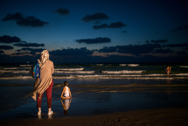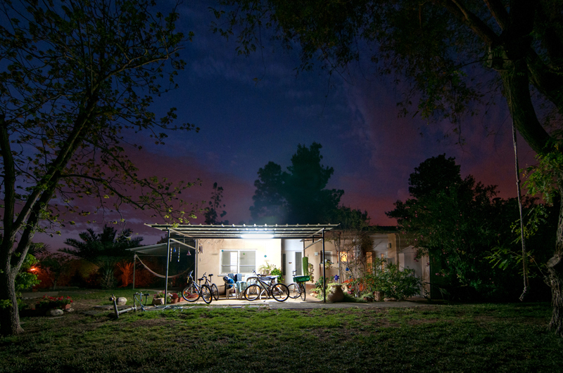 Die Ausstellung umfasst 3 Serien von Fotografien (24 à 50 x 75 cm, 6 à 120 x 180 cm), in denen Ilan Nachum Bezug nimmt auf politische und soziale Phänomene des heutigen Israel. Seine Themen sind: Der Niedergang der utopischen Vision der ersten Siedler, der Umgang mit der arabischen Bevölkerung und die notwendige Absurdität des israelischen Militärs.In der Serie „Privatized“ dokumentiert Ilan Nachum seit 2009 die mit der in den 80er Jahren eingeleiteten Privatisierung der Kibbutzim einhergehenden Veränderungen. Seine Nachtaufnahmen der typischen Kibbutz-Häuser strahlen Einsamkeit und Isolation aus. Sie konterkarieren die klassische Ikonografie der Darstellungen von „Leben im Kibbutz“ -Gruppen spielender Kinder, Gruppen von Arbeitern. Auf seltsame, aber faktisch unterlegte Art und Weise verändern sich die Behausungen von Symbolen einer egalitären Utopie zu Illustrationen eines klassischen Vorstadtlebens.„Für mich waren die Kibbutzniki das Rückgrat der israelischen Gesellschaft. Die hart arbeitenden und hart kämpfenden Leute“, sagt Ilan Nachum. Sein Blick auf die Kibbutzim von heute verbindet Schönheit und Melancholie.„One hour on the beach“ zeigt das „Zusammenleben“ säkularer Israelis und muslimischer Araber am Strand. Die Aufnahmen entstanden in der Stunde nach Sonnenuntergang an den Stränden Tel Avivs. Die reine Schönheit der fotografierten Szenarien verbindet die getrennten Gruppen in einer überwältigenden Präsenz von Himmel, Strand und Meer. Die gewählte Zeit, der Übergang von Tag zu Nacht, verstärkt den existentiellen Ausdruck der Arbeit und lässt Gedanken an soziale und religiöse Segregation kleinlich und sinnlos erscheinen. In der Negev Wüste stieß Nachum auf bizarre Konstellationen, die zunächst an Werke der Land-Art erinnern: seltsame Objekte auf künstlichen Hügeln, befremdliche Konstruktionen und kreisförmige Arrangements. In der Weite der Wüste platziert, lassen sie einen surrealistischen Eindruck entstehen, der an Gemälde von Dalí oder Tanguy erinnert. Es stellte sich heraus, dass die aus Schrott gefertigten Gebilde der israelischen Luftwaffe als Übungsziele - „Targets“, so der Titel der Serie - dienen. Surreale Phantasien verbinden sich mit der Realität des Krieges. Schichten des Realen und des Imaginierten verschmelzen unter einer unbarmherzigen Wüstensonne.Ilan Nachum spielt virtuos mit den Möglichkeiten fotografischer Kunst- und Dokumentation. Immer den notwendigen Abstand haltend, ist seine tiefe Verbundenheit mit dem fotografierten Subjekt, dem Leben in Israel mit seinen Problemen, seinen Absurditäten und seiner Schönheit, intensiv zu spüren.Ilan Nachum lebt und arbeitet in Tel Aviv. 1987 graduierte er an der Beit-Zvi School for Performing Arts. Er hat als Kameramann für TV-Kanäle wie Discovery Channel, National Geographic, Arte, History Channel, P.B.S., gearbeitet. In gleicher Funktion drehte er Commercials, Musik-Videos, Spielfilme.Von 2002 bis 2008 lehrte er an der Maale, School of Films and TV, Jerusalem. Seit 2005 unterrichtet er am Minshar College of Fine Arts Fotografie und Film. Seit 2007 arbeitet Ilan Nachum als freier Fotograf. Diese Tätigkeit resultiert in Einzel- und Gruppenausstellungen in Tel Aviv und Buchveröffentlichungen. 2014 erschien sein opulenter Bildband „Tel Aviv - one day in the city´s life“.