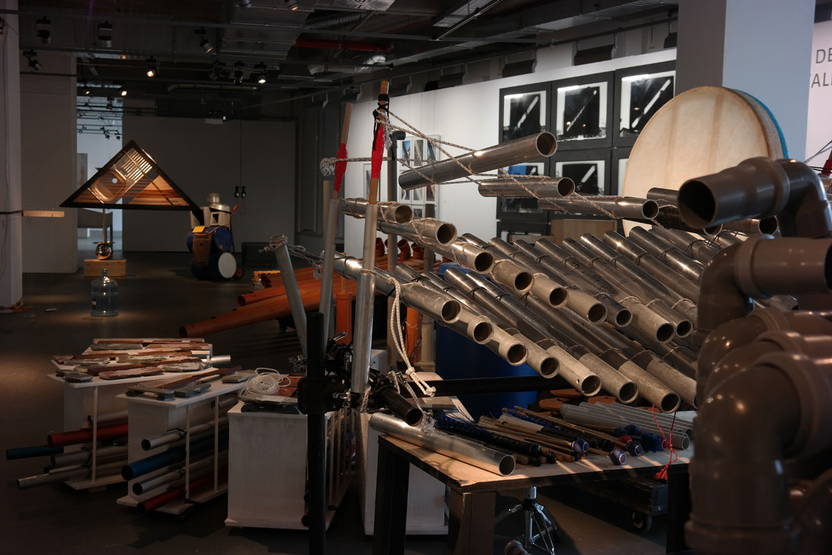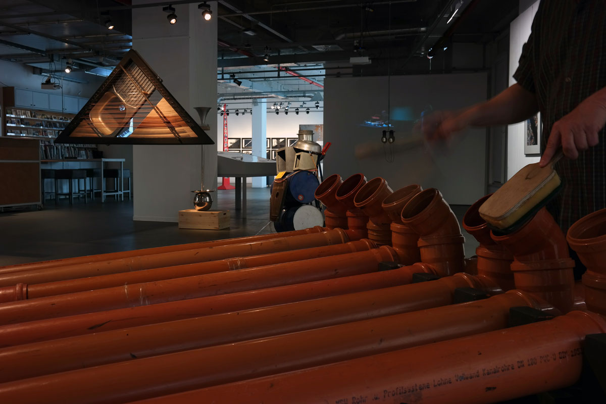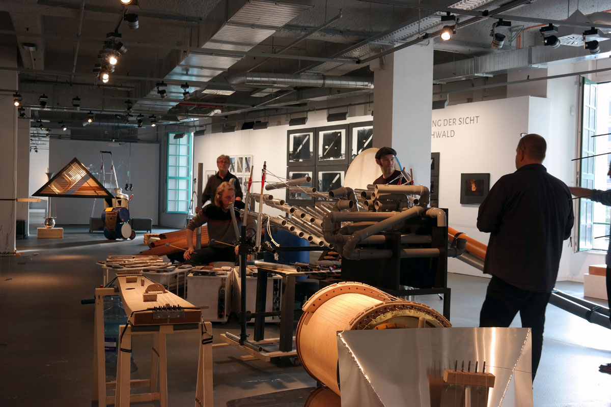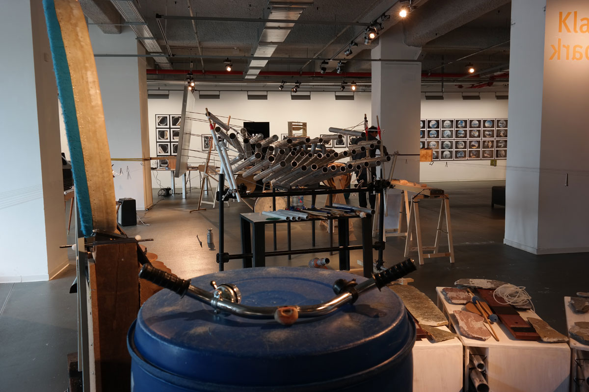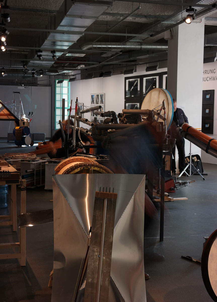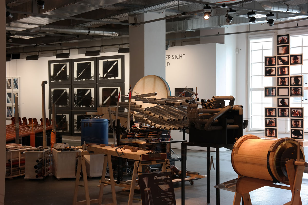 KLANGPARK – das sind neue Klangskulpturen, Klangkörper und Instrumente die von Musikern aus Sachsen entwickelt wurden. Bekannt sind die Stahlbogenharfe von Steffan Claußner oder das Belllithoxyl von Bernd Sikora. Manches war als Entwurf lange in den Unterlagen der Musiker zu finden und wartete bisher darauf, gebaut zu werden. In der Ausstellung kann man diese Instrumente nun sehen, hören und auch zum Teil selber spielen. Der Ausstellungsraum der Neuen Sächsischen Galerie wird zum Klangpark. Longstrings, über 20 Meter gespannte Stahlsaiten, machen ihn zum Resonanzkörper, die Stahlbogenharfe, elektronische Instrumente und auch neue Klangobjekte werden im Galerieraum eingebaut und in abendlichen Konzerten gespielt. Der KLANGPARK steht auch für Workshops und Schülerkonzerte zur Verfügung, um die Herangehensweise an Instrumentenerfindungen, die Umsetzung und das Spielen zu erforschen. In den Workshops geht es um Klangentstehung, Klangformung und Verstärkung. Beteiligt sind Musiker wie Tobias Brunn, Bernd Sikora, Mathis Stendike, Mitch Kunze, Gregor Kuhn und Steffan Claußner. Begleitet wird das Ganze von einer Fotoausstellung, die die Musiker und ihre Arbeiten dokumentiert.