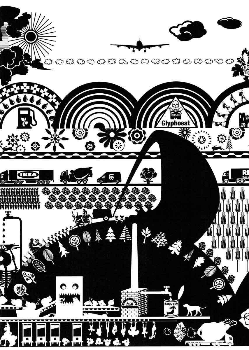 Bilder dominieren Erinnerungen. Auf riesigen Formaten von bis zu 14 Metern Länge versammelt der Künstler ikonisch gewordene Personen, Gesten, Gegenstände, Namenszüge und baut sie zu Bilderzählungen wichtiger Ereignisse der letzten Jahre zusammen: Mit Krieg spielt man nicht, der Kulturkampf Ost-West, Corona, das Landleben im Speckgürtel der Metropolen, die immer wieder auftauchenden Fälle von Kindesmißbrauch. Aufgelöst in Schwarzweissgrafiken und begleitet von einem signethaften Bildalphabet entstehen Bildteppiche, die die Komplexität privater und gesellschaftlicher Prozesse einfangen.
