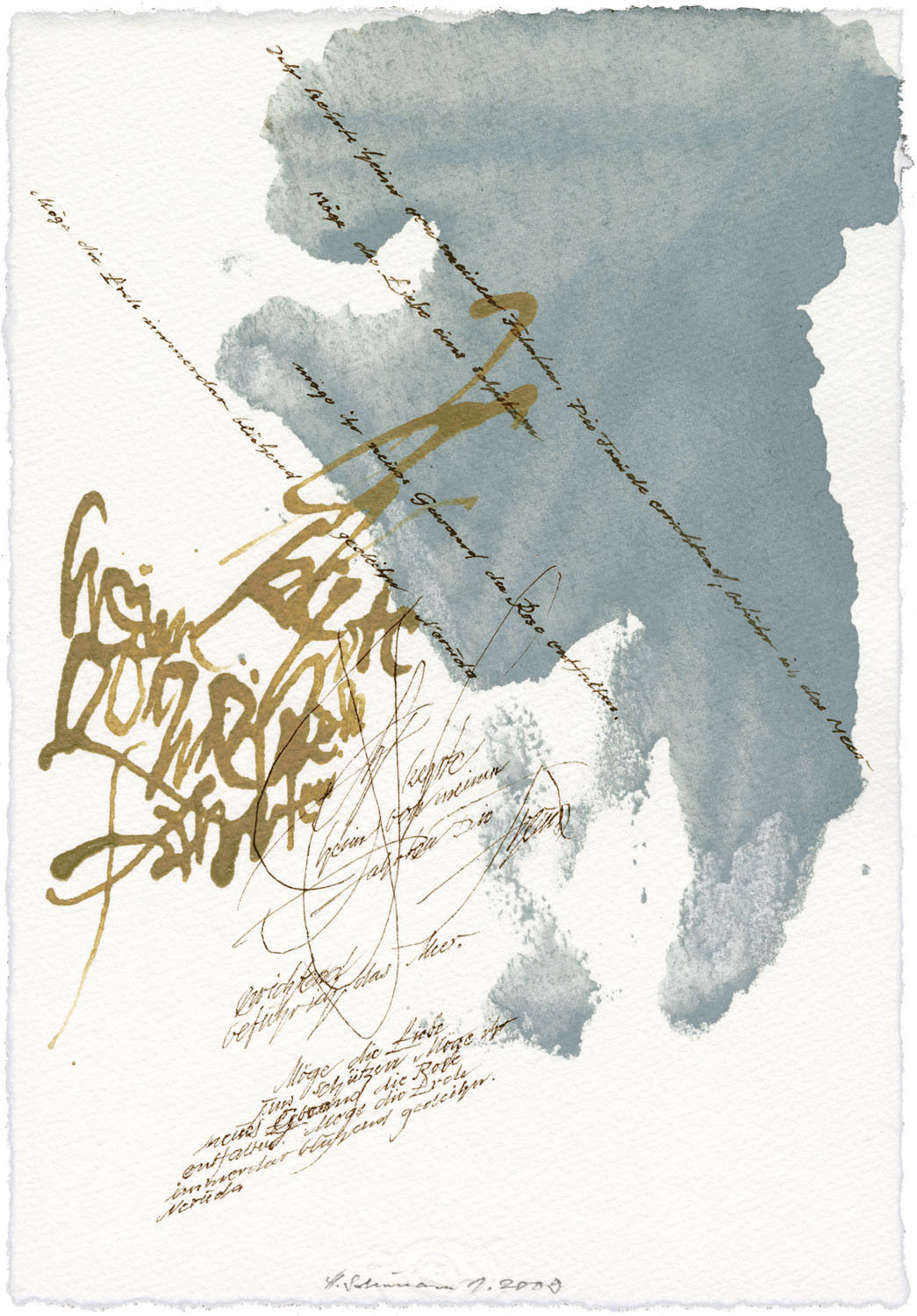 Kalligrafie – die Kunst des Schönschreibens(ab Klassenstufe 8)Jede Form von Schrift transportiert zunächst Informationen. Im besten Fall kann sie leicht lesbar sein und ist für jeden zu erfassen. Eine ausgeprägte Handschrift wirkt persönlich und kann voller Charakter und individuellem Ausdruck stecken, während die allgemeine Lesbarkeit hierbei durchaus in den Hintergrund treten kann. Der Chemnitzer Grafiker Heinz Schumann hat sich ein Leben lang mit Schrift und besonders mit Kalligrafie befasst. Bei einem Rundgang wollen wir eintauchen in seine meisterhaften kalligrafischen Werke, in denen sich Lesbarkeit und künstlerisch-freie Gestaltung oft miteinander mischen.Nach einigen Übungen mit Stahlfedern könnt ihr einen kurzen Text kalligrafisch auf das Papier setzen. Mit Aquarell- oder Goldfarbe sind zusätzlich auch farbige Akzente möglich.