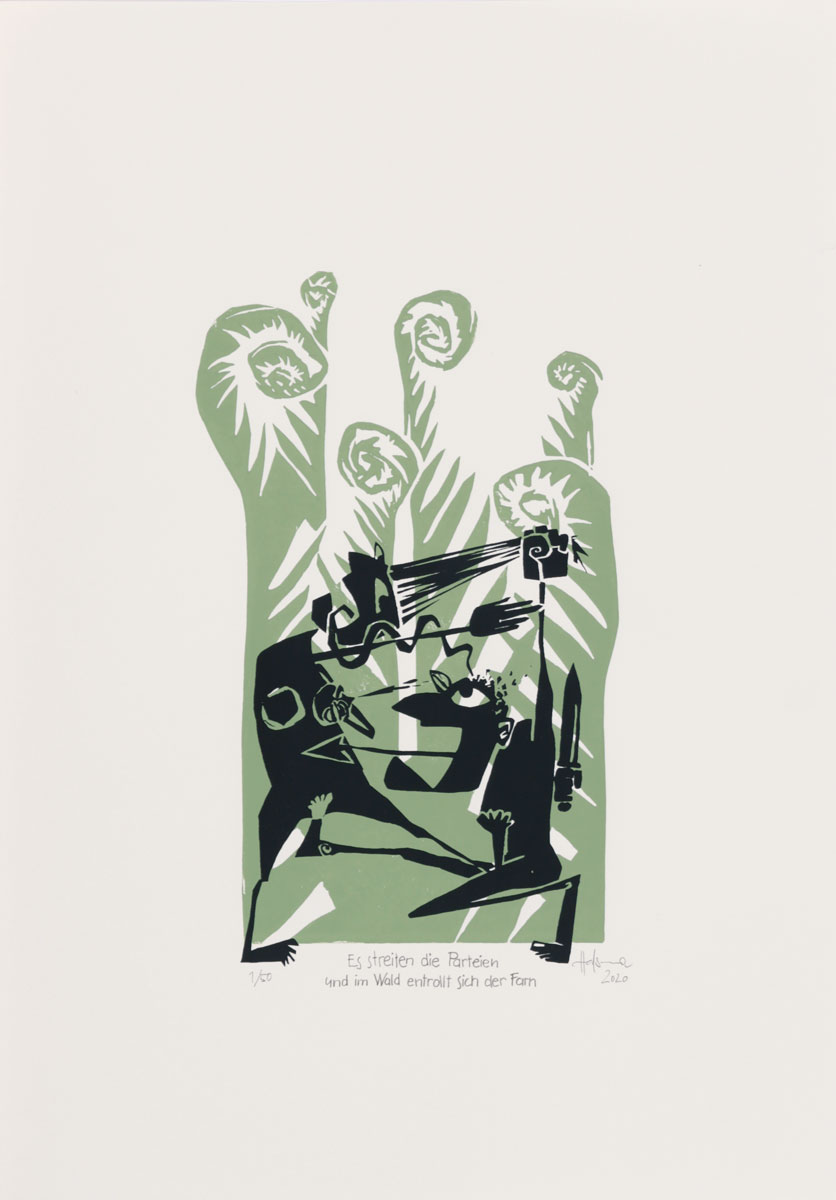 Der Kunstverein beauftragt vier Künstlerinnen und Künstler, vornehmlich aus Sachsen und in allen Generationen, zur Produktion einer neuen Druckgrafik in traditioneller Handarbeitstechnik, deren 40er Auflage dem Kunstverein zum Verkauf zur Verfügung gestellt wird.Die neuen Jahresgabengrafiken 2026 liegen bereits vor und können exklusiv und zum Vorzugspreis von 60 Euro von den Vereinsmitgliedern der Kunsthütte bis zum 31. Januar 2026 erworben werden. Danach kosten die verbliebenen Exemplare der Grafiken für Mitglieder und Nichtmitglieder 100 Euro.Beim Erwerb von mindestens fünf Grafiken erhält man eine Grafik gratis.