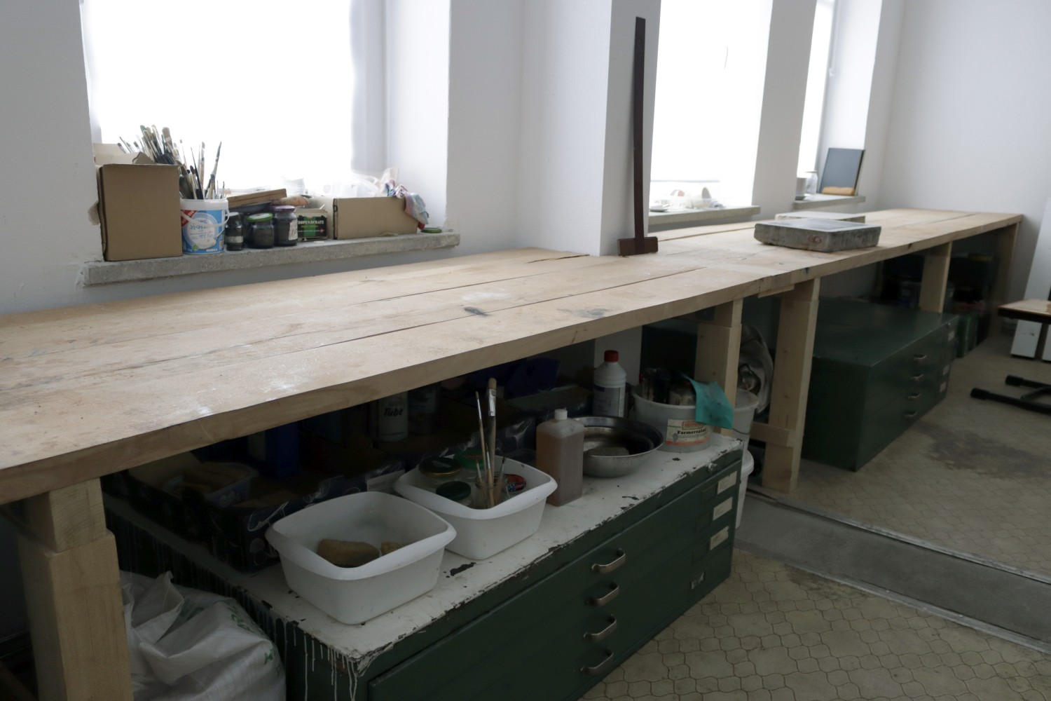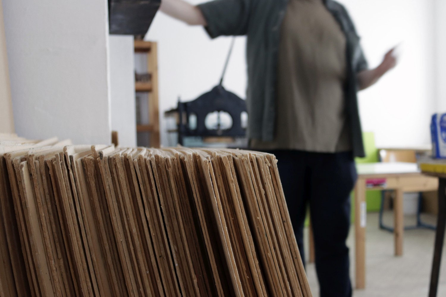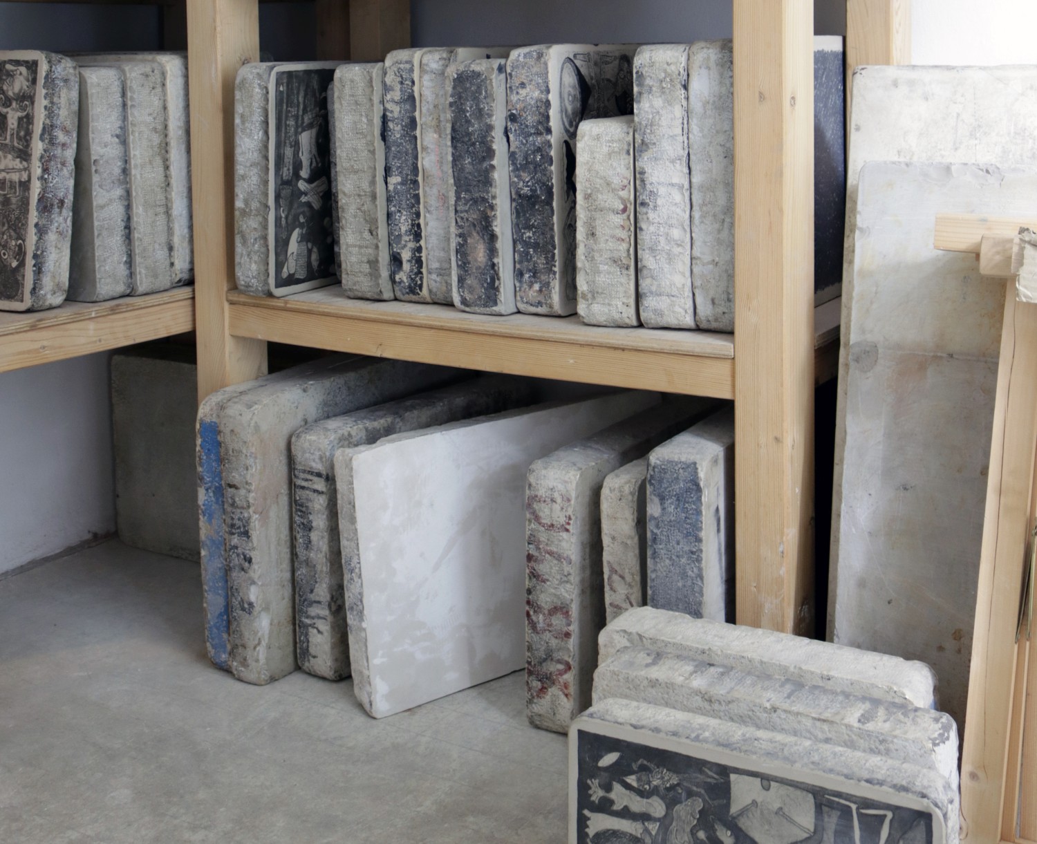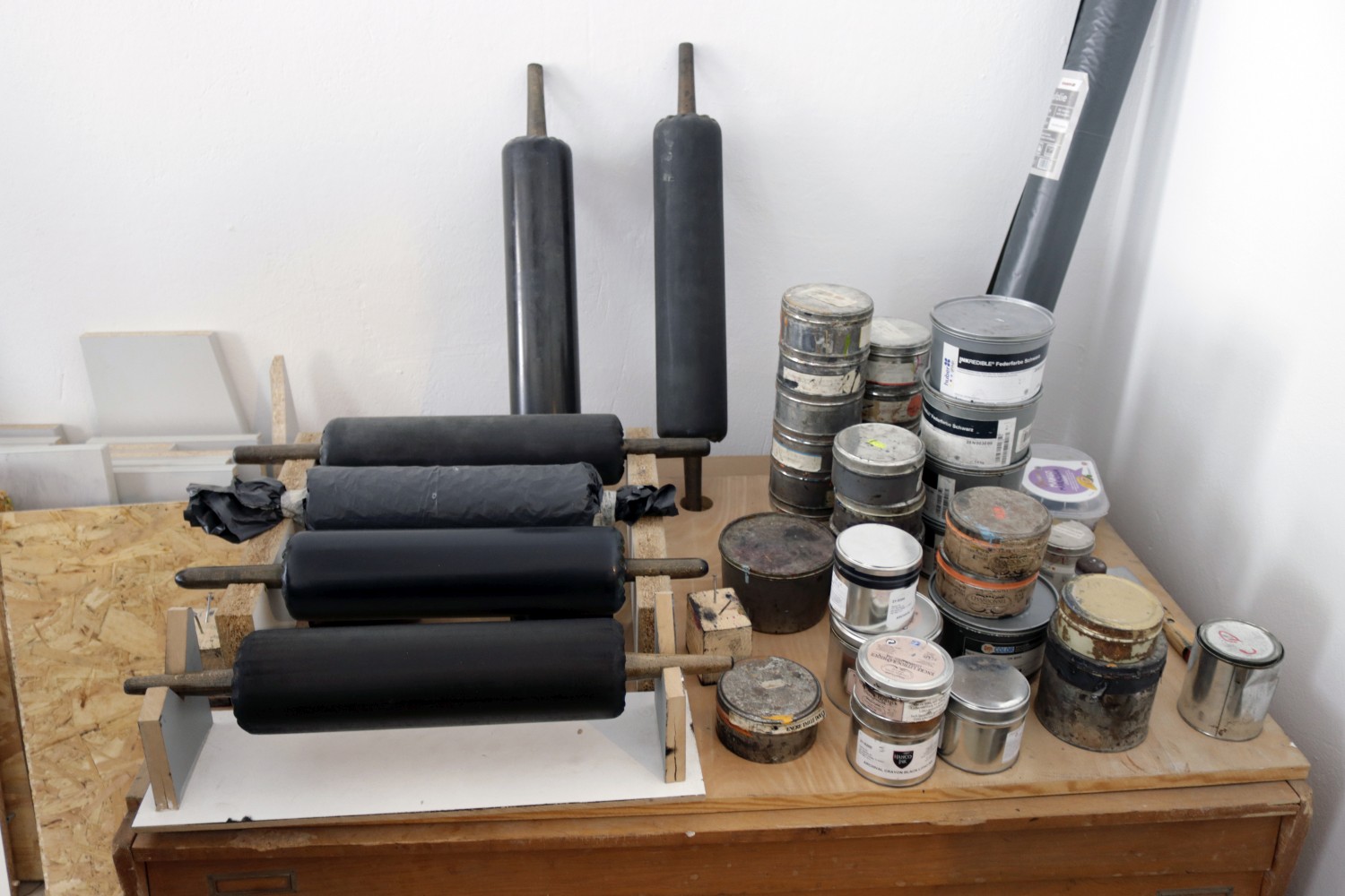 Der DRUCKSTOCK ist eine lebendige Werkstatt, in der Künstler*innen auf unterschiedlichste Weise an der Entstehung neuer Grafiken arbeiten. Hochdruck, Tiefdruck und Steindruck stehen hier auf der Tagesordnung.