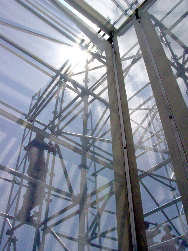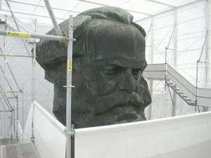Am 21. April begann der Bau der später verdeckten Gerüstkonstruktion, die wegen der Schrägstellung des Kubus für die ausführenden Handwerker eine nie gehabte Herausforderung darstellt.Am 5. Mai, dem 190. Geburtstag von Marx gab es ein großes „Marx lesen“ der Kabarettbühne Fata Morgana am bereits sichtbaren, aber noch nicht verhüllenden Gerüstbaukörper. Bis Anfang Juni wird dann der weiße Kubus entstehen. Treppen und Stege in seinem Inneren sorgen für die Begehbarkeit. Auf einer Plattform in Augenhöhe der Skulptur, ist Raum für die Beschäftigung mit Marx. Akustisch und in Buchform wird das „Kapital“ zugänglich sein.An einem Sonnabend Abend Ende Juni gibt’s Marxmusik und halten Karl Joachim Beuchel, der ehemalige Chemnitzer Stadtarchitekt, zur Baugeschichte des Denkmals und Dr. Eske Bockelmann, Dozent am philosophischen Institut der TU Chemnitz, zu den Kernaussagen des Kapitals unterhaltsame Vorträge.