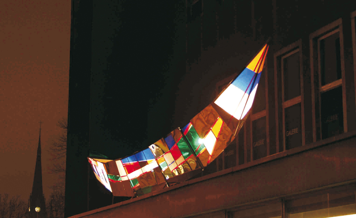 Installation auf dem Vordach des Galerieeingangs in der alten Aktienspinnerei, Straße der Nationen 33 in Chemnitz - ZERSTÖRT